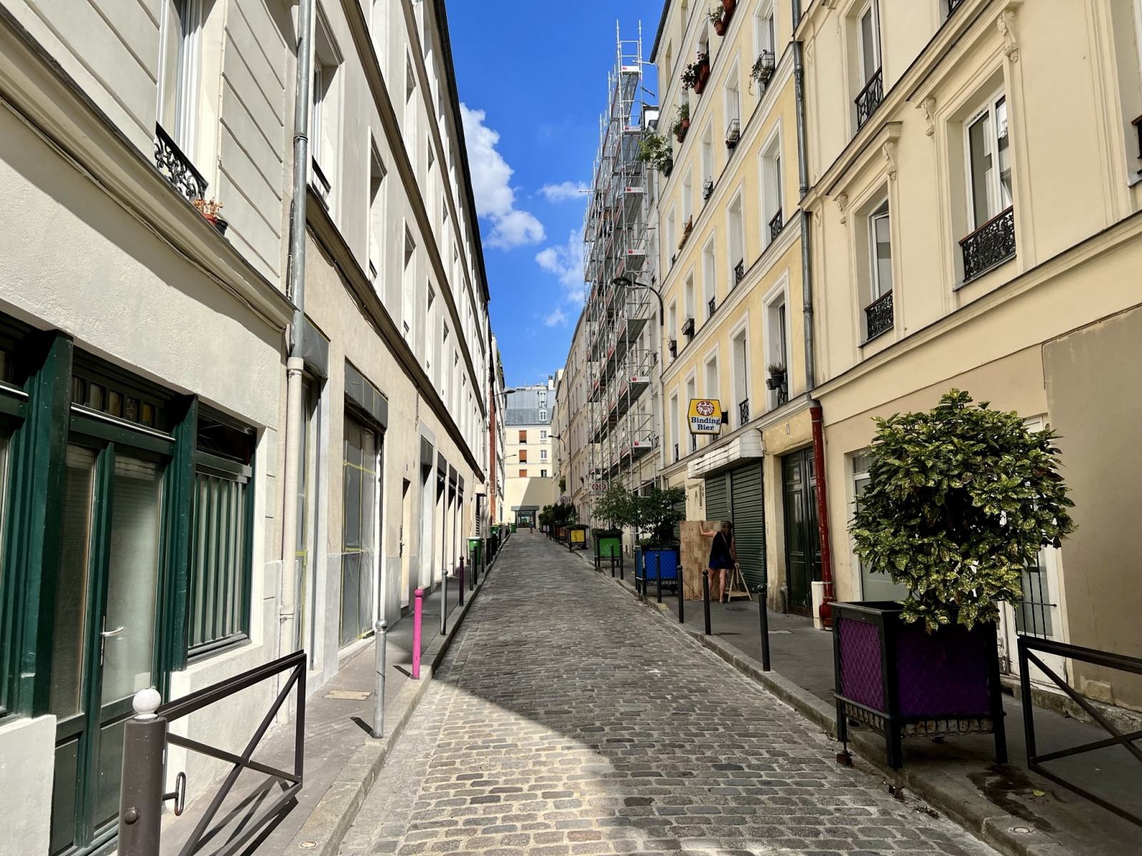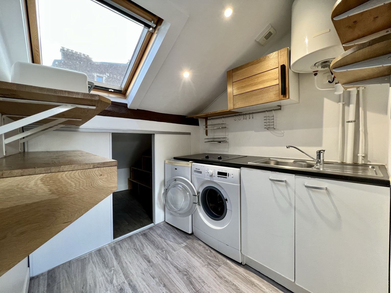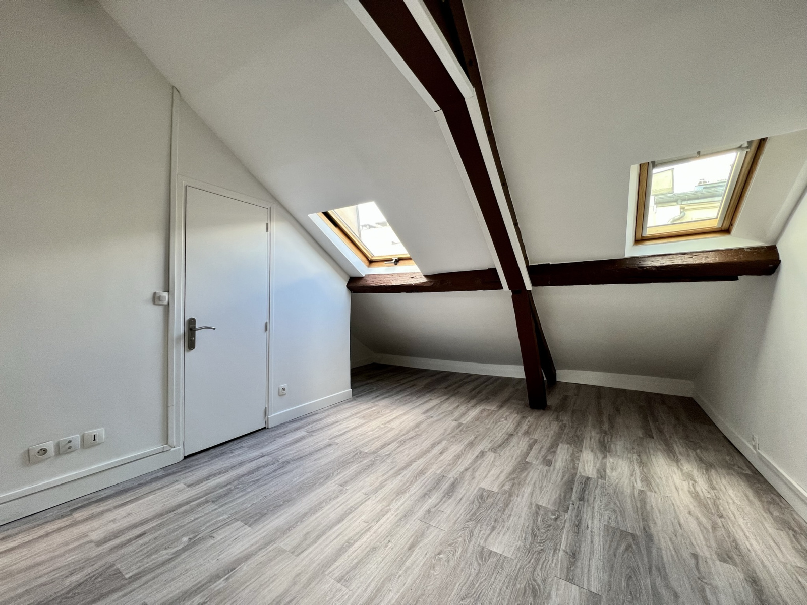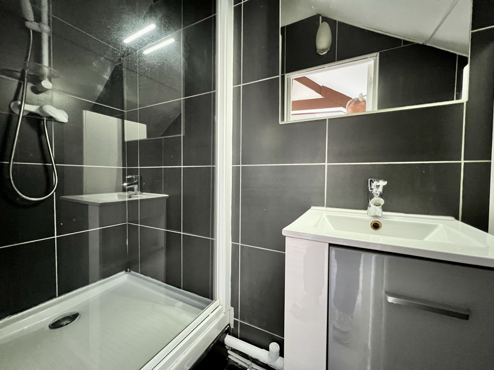 Métro Saint-Ambroise. Cité Popincourt. Immeuble ancien ravalé. 5ème et dernier étage. Studio mansardé de 28 m² au sol soit 12.05 m² carrez. Vaste pièce principale avec cuisine équipée, nombreux rangement dans les combles. Salle d'eau avec douche, et véritable WC. Toiture isolée, fenêtres de toit "Velux". Parfait Etat.