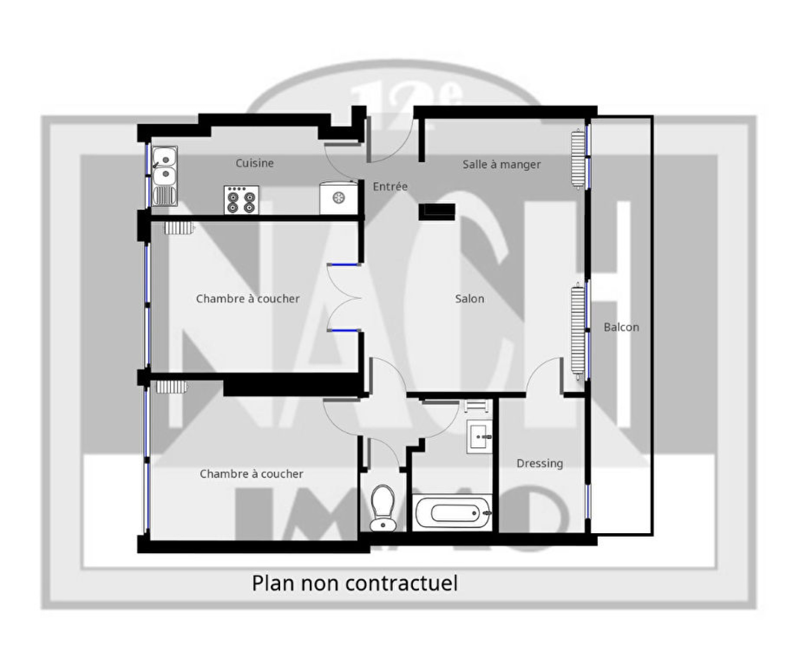 Rue Rottembourg. Résidence récente de standing en parfait état, avec Gardien. 9 ème étage, ascenseur. Appartement traversant. Entrée, double séjour de 24 m² ouvert sur un Balcon / Terrasse de 10 m² exposé sud/est. Vue dégagée. Cuisine indépendante. Deux chambres, salle de bains, wc séparé, dressing. double vitrage. chauffage et eau chaude collectif. Exclusivité