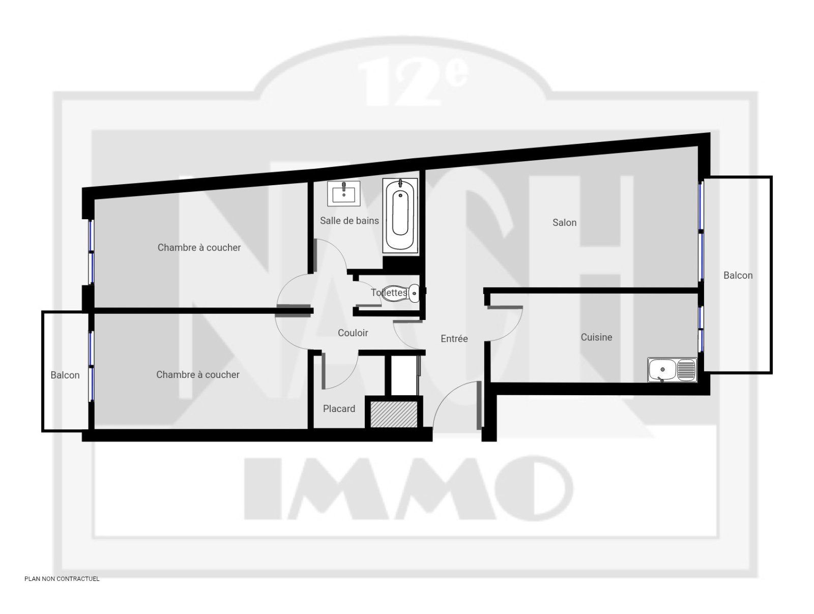 Métro Bel-Air. Boulevard de Reuilly. Immeuble récent de standing (ravalements façades en cours), gardien, digicode, interphone. Appartement traversant. Entrée avec placard, Séjour de 18 m², ouvert sur balcon de 8 m² exposé sud. cuisine indépendante (US possible). Deux chambres, Dressing, salle de bains, WC séparé. Double vitrage, chauffage et eau chaude collectifs.