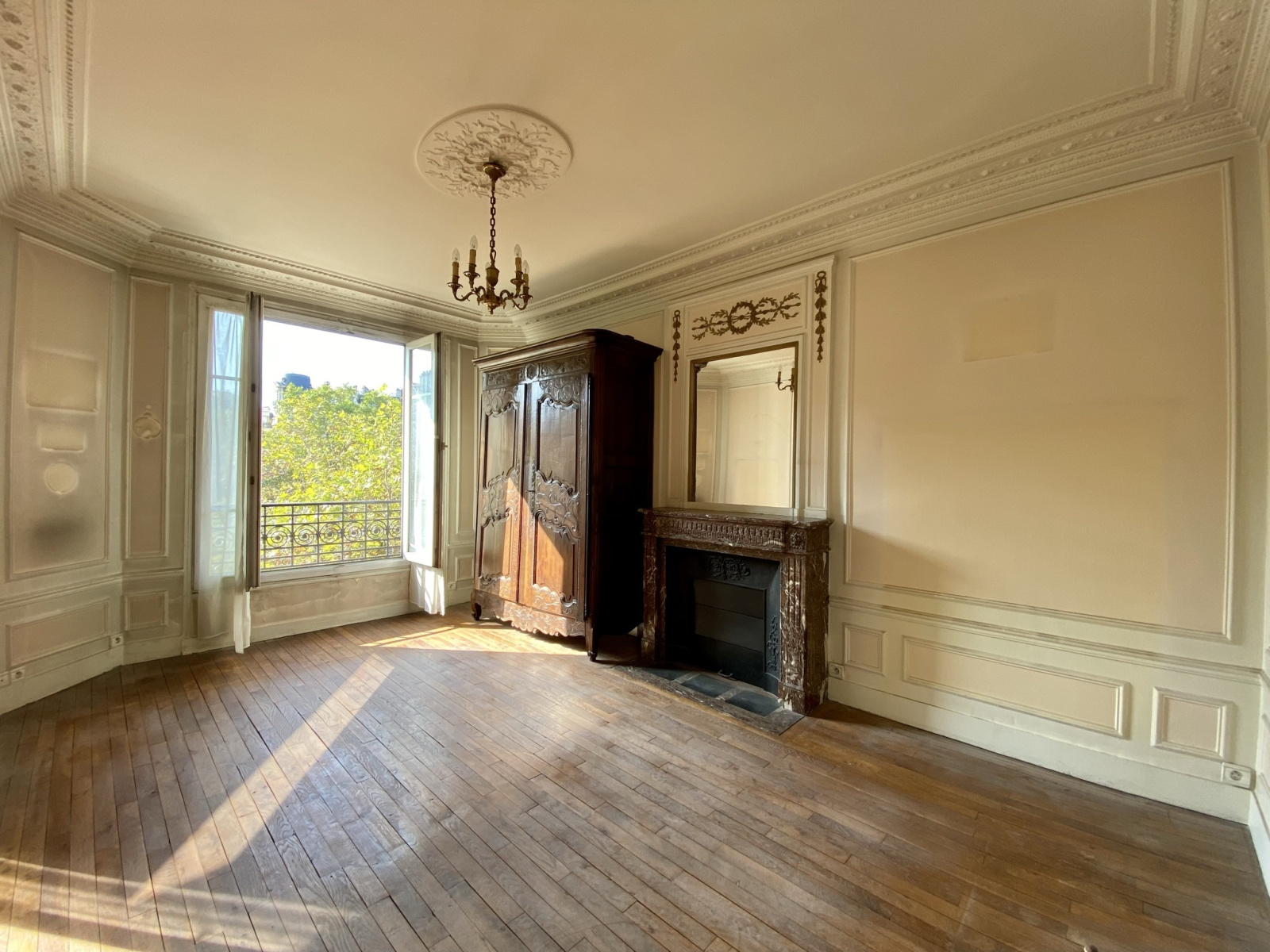 Place Félix Eboué. Immeuble pierre de taille, de standing en parfait état. 3ème étage avec ascenseur. Entrée en étoile, Double séjour de 31 m² exposé Sud. Cuisine indépendante, une chambre de 12 m², salle de bains, WC séparé. Double vitrage, Hauteur sous plafond: 2.80m, Parquet, Moulures et Cheminées.
