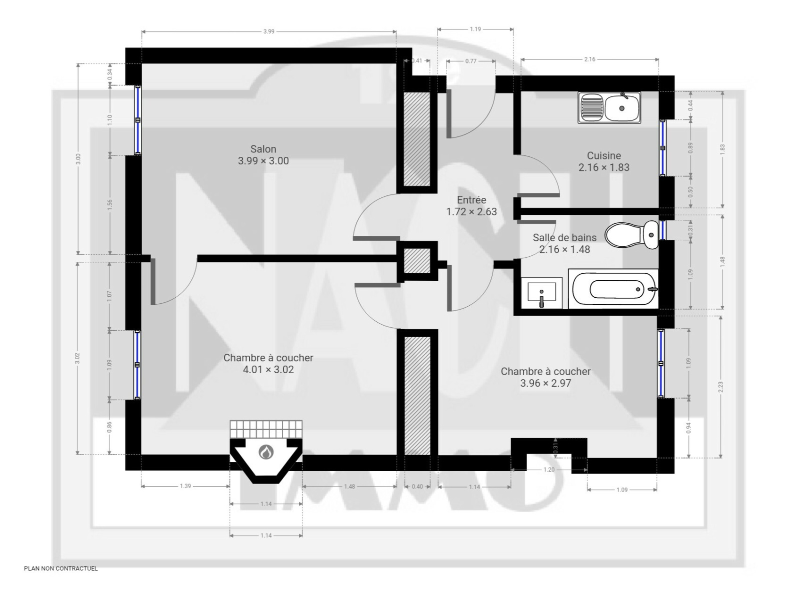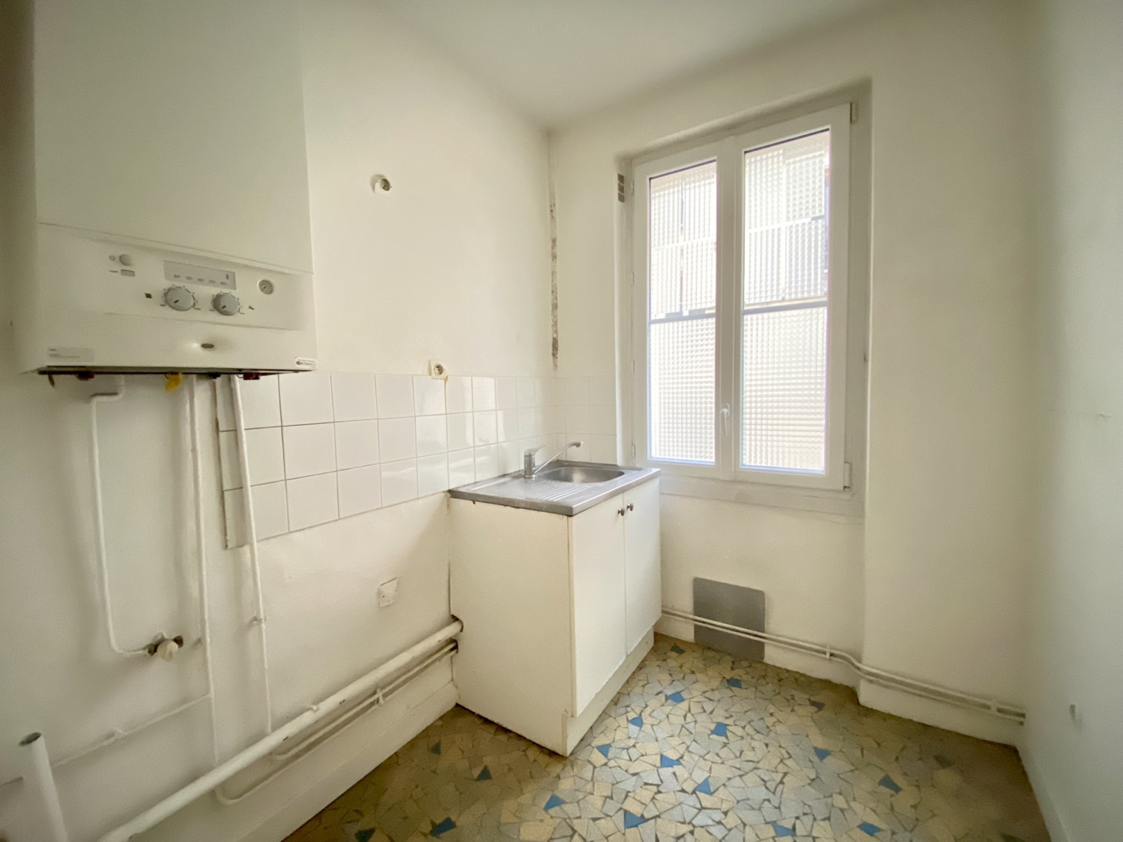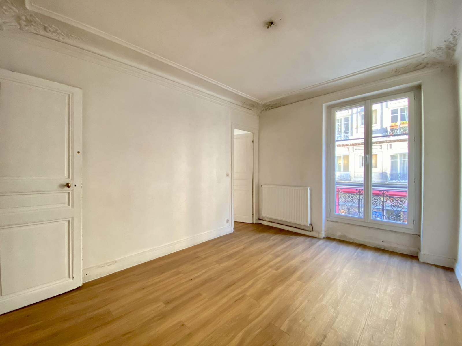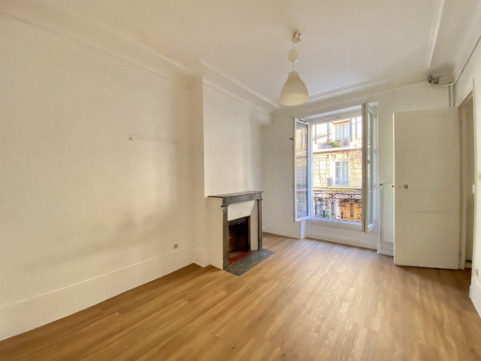 Métro Jules Joffrin. Rue Simart. Immeuble ancien en pierre de taille. Appartement de 3 pièces disposées en étoile. Entrée, Séjour, deux chambres, Salle de bains avec WC, cuisine indépendante. Parquet, Moulures, Cheminée. Double vitrage, chauffage individuel gaz.