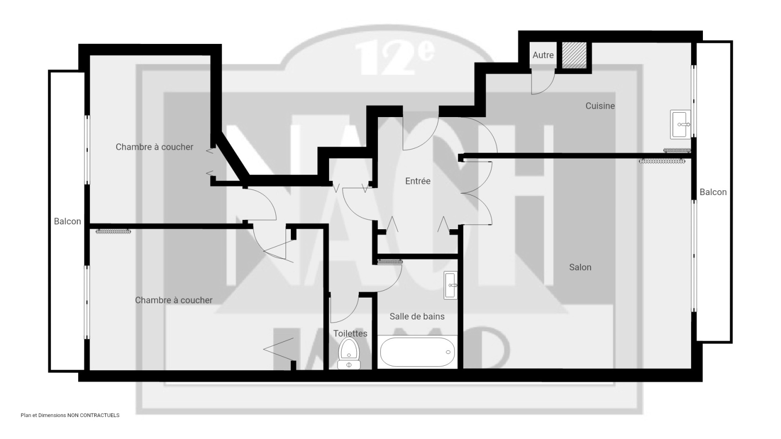 M° Michel-Bizot. Rue de Fécamp. Immeuble récent de standing, Gardien, Appartement traversant, situé au 5ème étage avec ASC, Entrée, Séjour 22m² ouvert sur balcon et vue dégagée sur jardin. exposition sud . Cuisine indépendante (US possible), deux chambres avec balcon, Salle de Bains, WC séparé. Parquet, Nombreux rangements. Double vitrage. Chauffage et eau chaude collectifs (DPE: D) Cave et Parking.